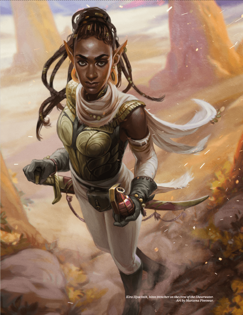 After some fiction, the introduction opens with a paragraph I love to see. It makes it very clear what I’m going to play, and what we are going to do. You play a member of a crew, and you’ll defeat marauders, monsters, and automatons, while exploring deserts, ancient caverns, and airships. It elaborates on each of those questions with sections called “Who is it for” and explains that its a game for people who want tactical choices. It also outlines what it isn’t. That’s refreshing. “This game isn’t meant for someone who just wants to tell a fun story with their friends”. It’s “for the person who wants to play a challenging, cooperative strategy game as the core combat mechanic of their RPG.” The trend of one system for every need is something I’d like to see less of in TTRPGs, because its just not the case.