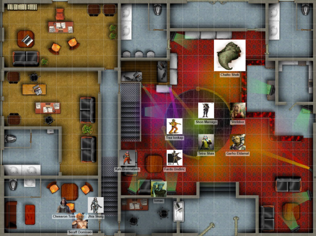 Set between episodes 3 and 4, the Dark Times, the party has been hired by a mysterious patron, Dru Lomastie to retrieve a holocron. She knows an imperial is making a drop to some bounty hunters at the Crimson Saber Lounge and has secured the squad an invitation.